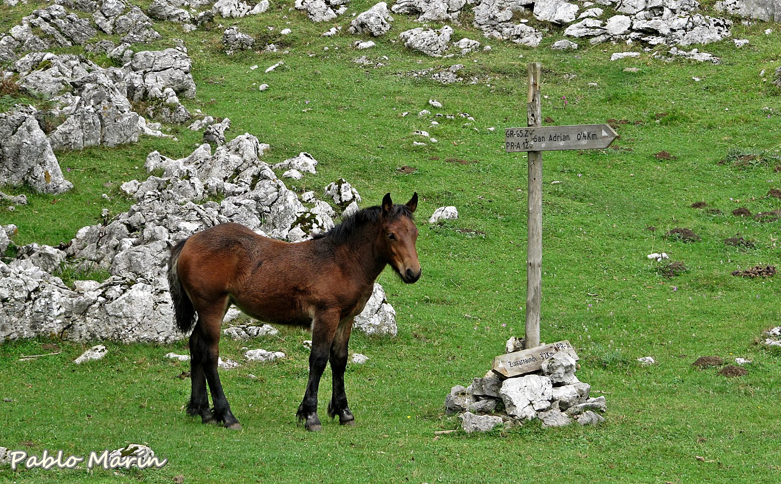 Una vez fuera, lo que observamos nos deja extasiados. Decenas de caballos pastan tranquilamente por una planicie, donde observamos a distancia unos carteles a los que nos acercamos, caminando pausadamente entre los équidos que nos miran con cara extrañada, pero que no hacen ademán alguno de quitarse de nuestro camino, dejando claro quién es el que se ha apropiado de un terreno que no le corresponde.